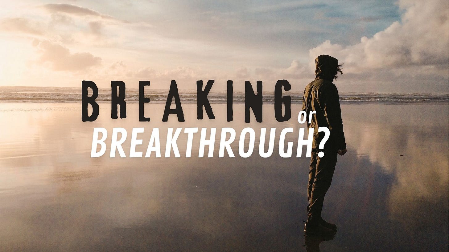 Anytime we set out in faith, we should come to expect that this moment will find us. Acting in faith means that we are stepping into something that is beyond us. When we don’t have the strength or knowledge or ability— God does. We are expecting him to come through. However, we may not experience breakthrough until we’ve discovered the moment of breaking.